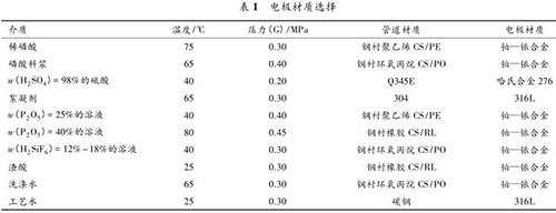 國內(nèi)某 300 kt/a 磷酸裝置中,含有不同溫度、不同壓力、不同濃度的多種酸液,包括:稀磷酸、濃硫酸、磷酸料漿、絮凝劑、P 2 O 5 溶液、H 2 SiF 6 溶液、渣酸、洗滌水、酸性循環(huán)水、工藝水等。如此復(fù)雜的工藝介質(zhì)對流量計(jì)的選型要求很高,酸液的配比、濃度、溫度、雜質(zhì)、溶解氣體以及流速等都會(huì)影響接液材質(zhì)的耐腐蝕性。