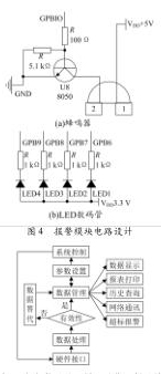 報警模塊由兩大部分組成,分別是蜂鳴器和LED 數(shù)碼管 。報警模塊采用 LR043JC211 液晶屏作為 LCD 顯示屏,其面板大小、分辨率和掃描頻率分別為4.2 英寸、480 ×242 ppi 和 60 Hz。數(shù)據(jù)接收處理模塊中設(shè)有液晶驅(qū)動寄存器,驅(qū)動接口與 LCD信號接口一一對應連接,而數(shù)據(jù)接口則與 3 個 LCD液晶數(shù)據(jù)接口相連。圖4 為報警模塊電路設(shè)計圖。