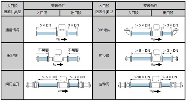 管路必須完全充滿液體。保證管路始終充滿液體至關(guān)重要,否則流量顯示會受到影響,而且還會出現(xiàn)測量錯誤。管路結(jié)構(gòu)的設(shè)計必須要保證測流管始終充滿流體。當(dāng)流體有分流或含有固體顆粒沉淀物時,建議使用垂直安裝。但采用垂直安裝時,要遵循流體從下到上的走向,以保證管路充滿流體。