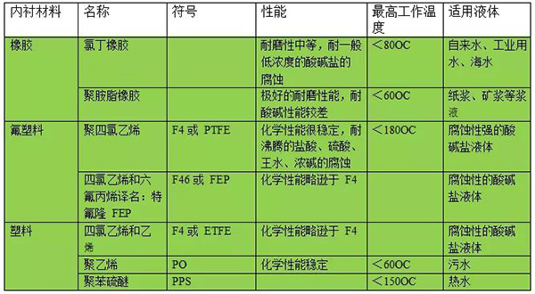 應(yīng)根據(jù)被測介質(zhì)的腐蝕性、磨損性和溫度來選擇內(nèi)襯材料。